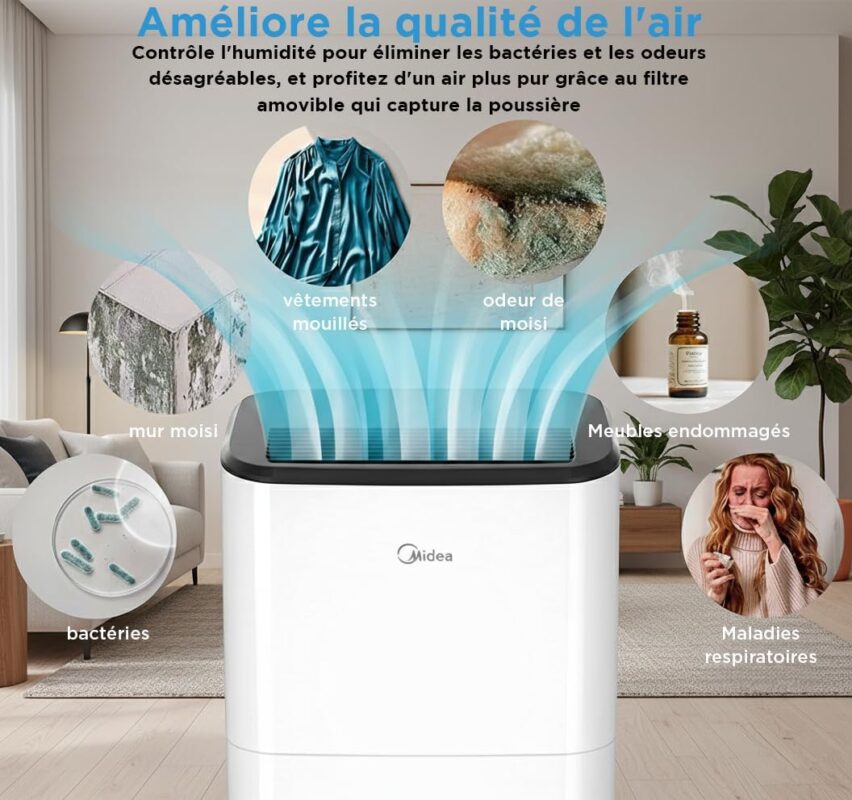 Protégez votre maison contre l’humidité avec un déshumidificateur Midea performant et économique. Livraison rapide, garantie 10 ans, experts à votre écoute.
