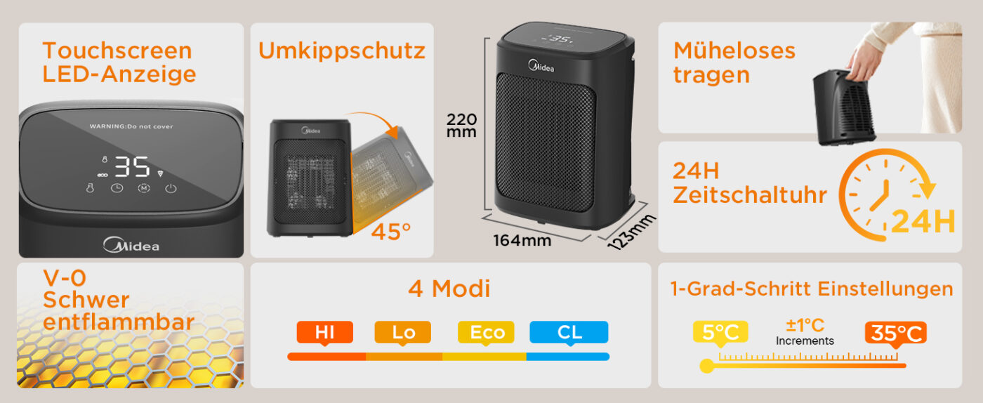 - ✓ Heizt in 3 Sekunden – Fortschrittliche PTC-Technologie