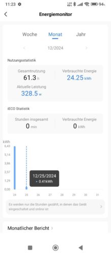 Weiterer Pluspunkt: In der App kann jederzeit der Tagesaktuelle Stromverbraucht und auch Monats und Jahresverbrauch eingesehen werden. Dicker Daumen hoch dafür!