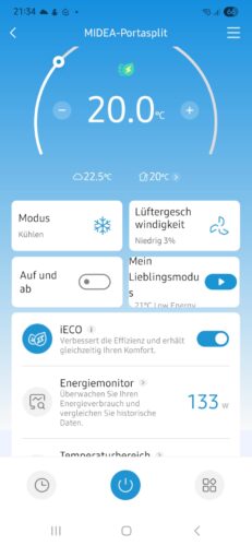 Die untere Midea wird mehr beansprucht, die obere schaltet den Kompressor meistens ab und läuft im Lüftermodus mit 17 Watt die Stunde.