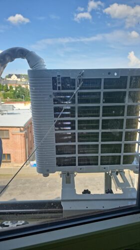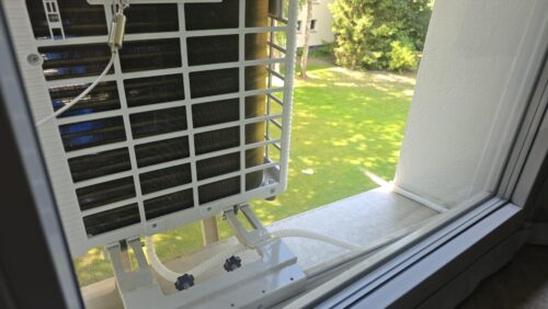 Nun zur Portasplit: Funktioniert das Konzept? Durch den Schlauch zwischen Innen- und Außengerät stellt sich mir natürlich die Frage, ob ich hier nicht aus dem Fenster kühle, da dieses ja immer leicht geöffnet bleiben muss.