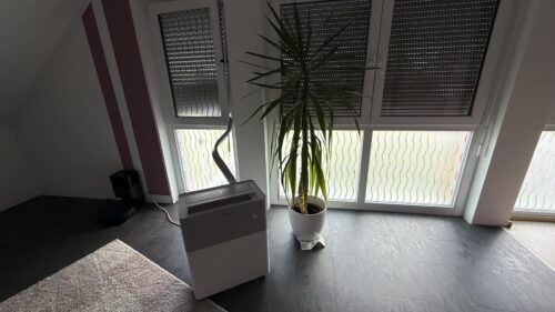Auch sinkt die Luftfeuchtigkeit in der Wohnung, aber nicht so stark wie bei Monoblock Anlagen. Deshalb lasse ich einen Luftbefeuchter laufen.