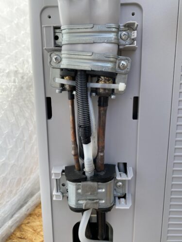 Kurz die Außeneinheit raus gestellt und den Kondenswasser Schlauch an der Unterseite angebracht sowie den