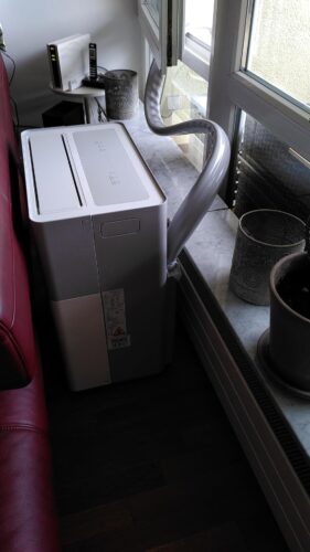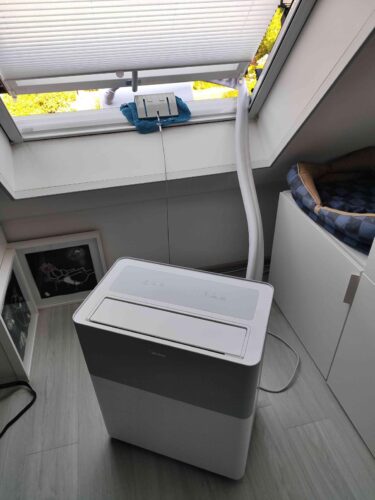 Wir hatten vorher eine „normale“ mobile Klimaanlage ausprobiert, die war aber nicht annähernd so effizient und leise wie diese hier.