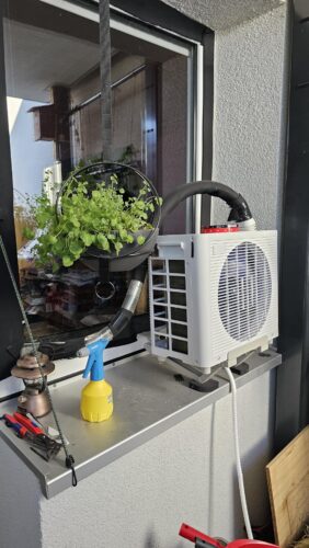 Die Anlage verbraucht auch nur einen Drittel an Strom im Vergleich zu der vorherigen mobilen Klimaanlage und passt perfekt zu unserem kleinen Balkonkraftwerk mit 300W Wechselrichter, dank diesem wir keine einzigen Cent Strom bezahlen müssen. Perfekte Ergänzung.