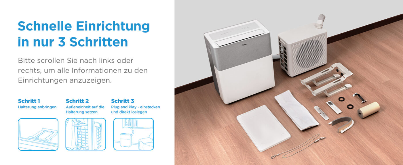 Vergessen Sie den Kauf von separaten Heiz- und Kühlgeräten. Der Midea Portasplit ist ein komplettes 4-in-1-Gerät.