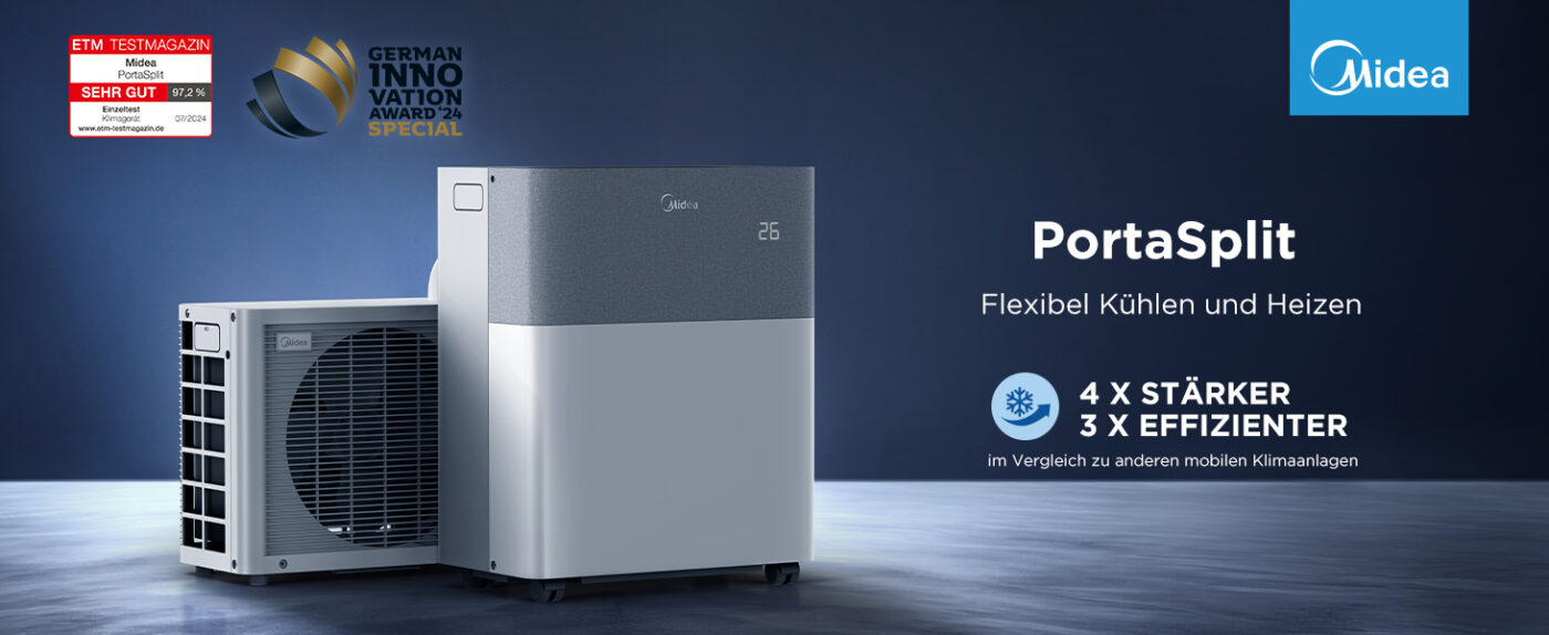 Ja, der Portasplit ist ein reversibles 4-in-1-Gerät: Klimaanlage, Heizung (Wärmepumpe), Entfeuchter und Ventilator. Er heizt effizient in der Übergangszeit und kann bis zu niedrigen Außentemperaturen betrieben werden.