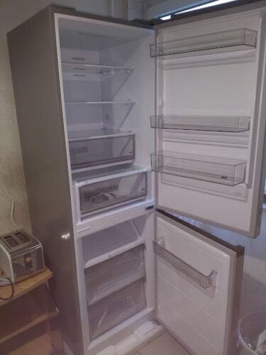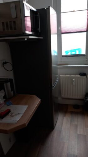 Nachdem das aber alles gut gegangen ist, wurde der Kühlschrank schadenfrei aufgestellt, das Altgerät entsorgt und alles sauber und ordentlich verlassen.