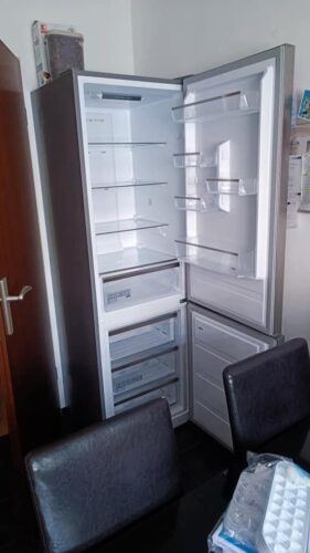 Die Lieferung kam pünktlich über den Hermes Lieferdienst. Die beiden Mitarbeiter wollten die Gefrierkombi erst gar nicht in den 1! Stock transportieren, weil ihre elektrische Sackkarre die Treppe nicht bewältigte. Erst nach gutem Zureden und einem Obolus ging der Transport händisch vonstatten! Zudem wurde das Produkt nicht ausgepackt, sondern nur in der Küche abgestellt. Also Amazon daran müsst ihr arbeiten, denn in dem Haushalt lebt eine alleinerziehende Mutter mit einem kleinen Kind. Das hat den Namen Service nicht verdient!