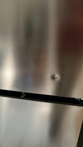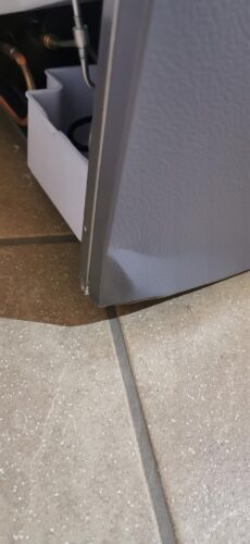 Jedoch muss im Werk schon ein Missgeschick passiert sein. Der Karton war unbeschädigt, der Kühlschrank hat aber leider eine sehr unschöne Macke.