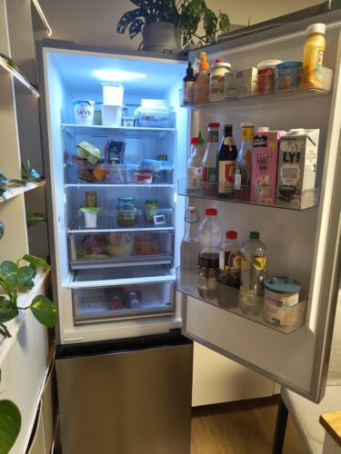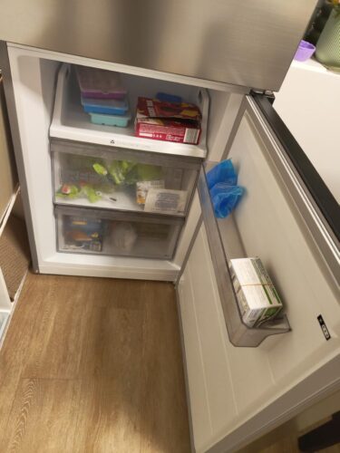 Der Kühlschrank ist schön groß, auch der Gefrierschrank hat eine gute Größe. Wir hatten uns für dieses Gerät entschieden, weil es eines der wenigen in dieser Größe ist, bei dem man den Türschlag wechseln kann. Das Gerät läuft sehr leise.