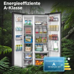 ⭐ Energieklasse A – Beste Effizienz | 🔇 Nur 35 dB Flüsterleise | 🧊 592 Liter Side-by-Side