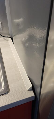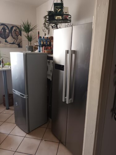 Es sieht nicht schön aus, der Kühlschrank steht nicht bündig wie der Vorgänger, aber sonst funtioniert er einwandfrei. Und , wer weiß ,falls ich noch mal umräume, steht er vielleicht in einer linken Ecke.