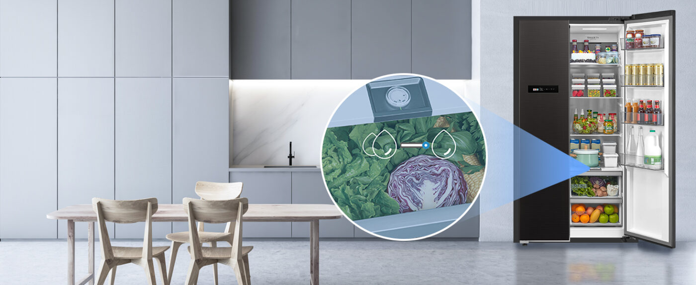 Die Dual Cooling Funktion hält Fisch und Fleisch in Ihrem Side-by-Side Kühlschrank optimal frisch. Zwei unabhängige Kühlkreisläufe sorgen dafür, dass keine Gerüche zwischen Kühl- und Gefrierteil übertragen werden.