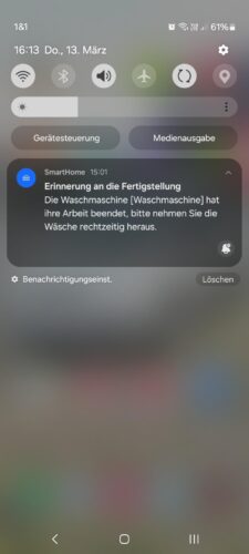 Super ist die Benachrichtigung nach Abschluss des Waschgangs.