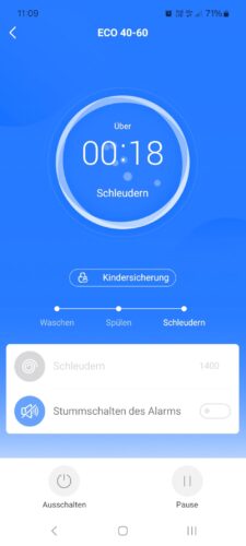 - Verbindung mit der App einfach und unkompliziert, die Waschmaschine lässt sich über die App fast komplett steuern