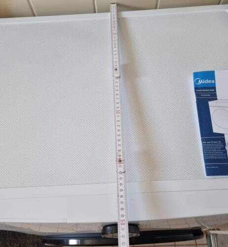 - auf Bild 2 ist zu sehen das die Maschine von Wand bis Bullaugen ende 53,2cm hat, somit sind die angegeben Maße von 48cm nicht korrekt.