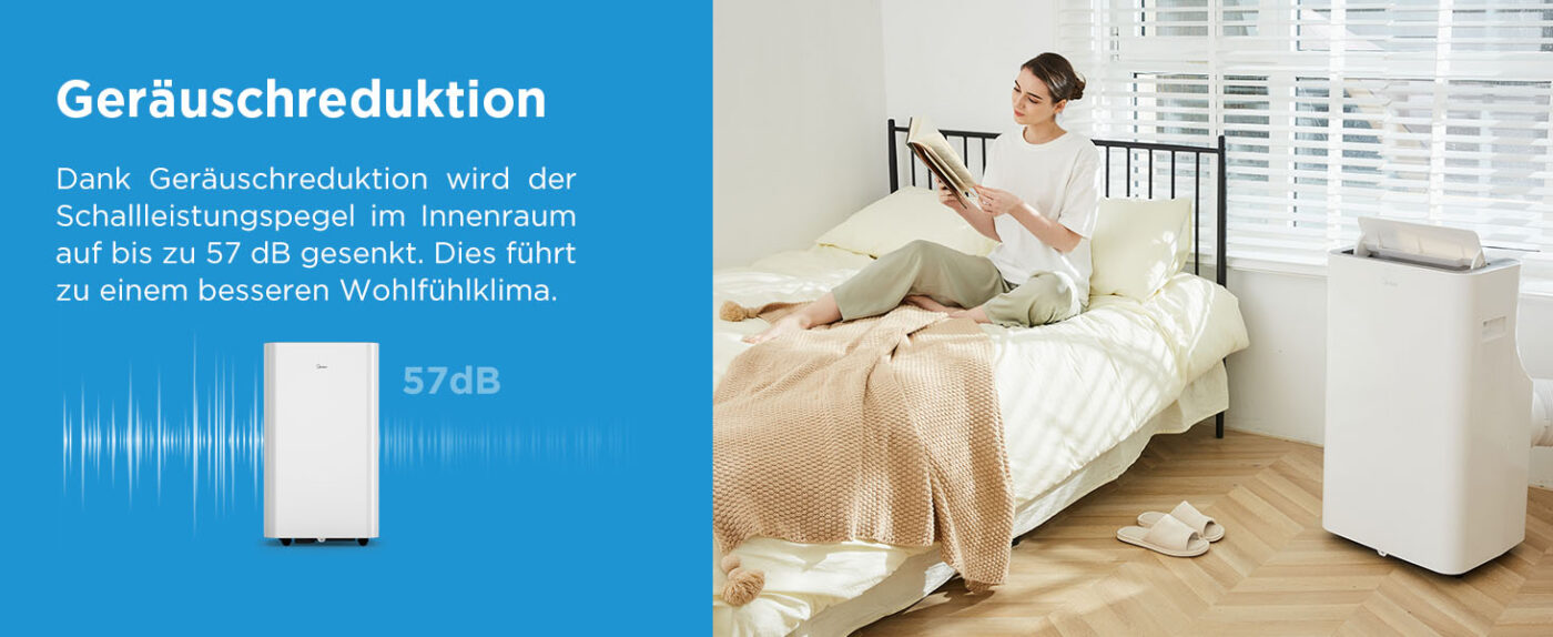 Dank der Midea Silent Technologie arbeitet das Silent Cool 26 Pro mit nur 57 dB Schalldruckpegel – das entspricht einem normalen Gespräch. Ideal für Schlafzimmer, Büros und Wohnräume, wo Ruhe wichtig ist.