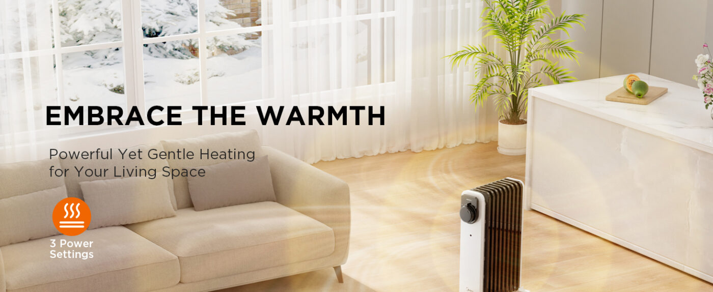 The 9 fins ensure even heat distribution across large spaces. Consistent and comfortable warmth whenever you need it.