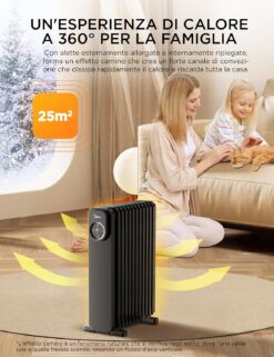 Avec ses 11 ailettes élargies et sa puissance de 2300W, ce radiateur peut chauffer efficacement des pièces jusqu’à 25 m² : salon, chambre, bureau ou salle à manger. Pour les grandes pièces, il constitue un excellent chauffage d’appoint.